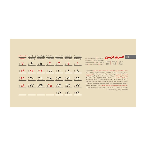 صفحات تقویم با فونت خوانا و چیدمان منطقی ماهها، بهگونهای طراحی شدهاند که با یک نگاه بتوانی وضعیت ماه و روزها را تشخیص دهی. فاصله خطوط و فضای کافی برای علامتگذاری روزهای مهم یا نوشتن یادداشت کوتاه در کنارهها وجود دارد. این طراحی برای مدیران، کارمندان، دانشجویان و هرکسی که نیاز به کنترل روزانه برنامهها دارد مناسب است؛ چون هر ماه را بهسرعت مرور و نکات مهم را ثبت میکنی.