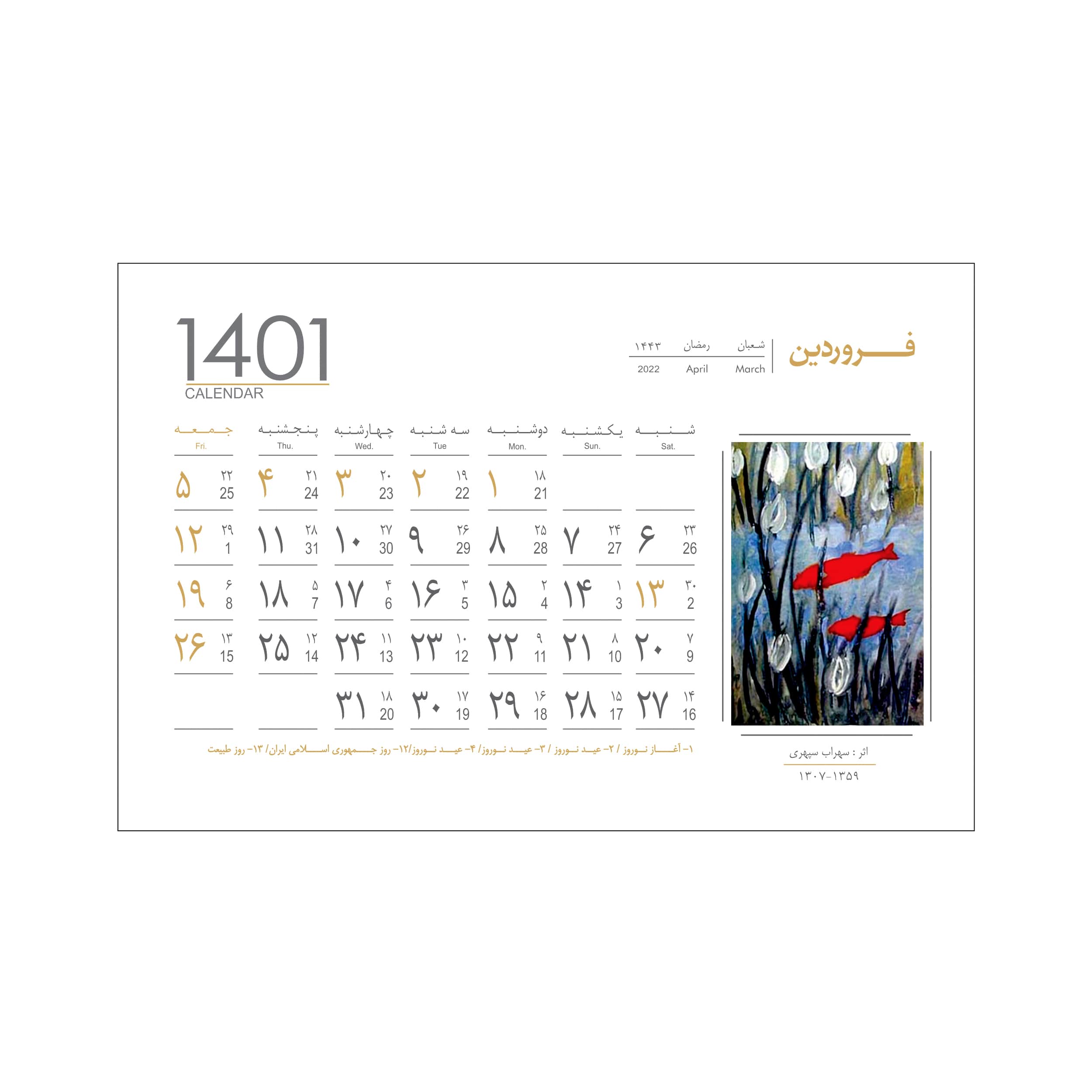 با داشتن تقویم رومیزی ۱۴۰۱ پدیده نقش به راحتی برای یک ماه خود برنامه ریزی کنید.